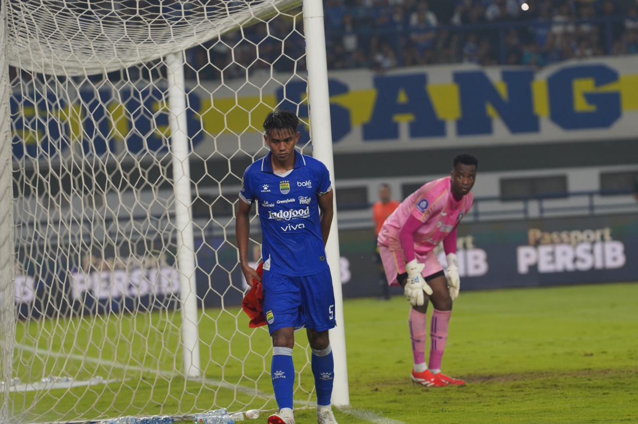 JAWA BARAT – Bek Persib Bandung, Kakang Rudianto, melakukan aksi tak lazim saat menghadapi PSBS Biak pada laga pekan ke-18 Super League 2025/2026 di Stadion Gelora Bandung Lautan Api (GBLA), Bandung, Minggu (26/1/2026).